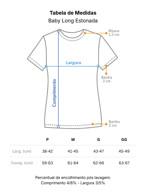 Cores do produto: Como cada tela de computador ou celular tem seu próprio jeito de mostrar cores, então a cor da sua camiseta e da estampa pode ser um pouco diferente do que você viu online.
