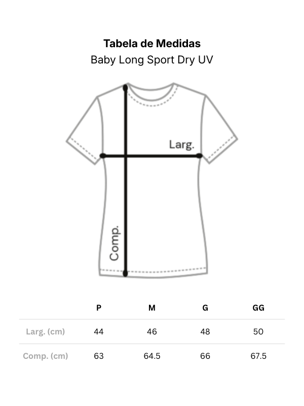 A camiseta Baby Long Sport Dry UV “Está feito.” foi criada para quem vive em movimento e deseja expressar sua energia com leveza.